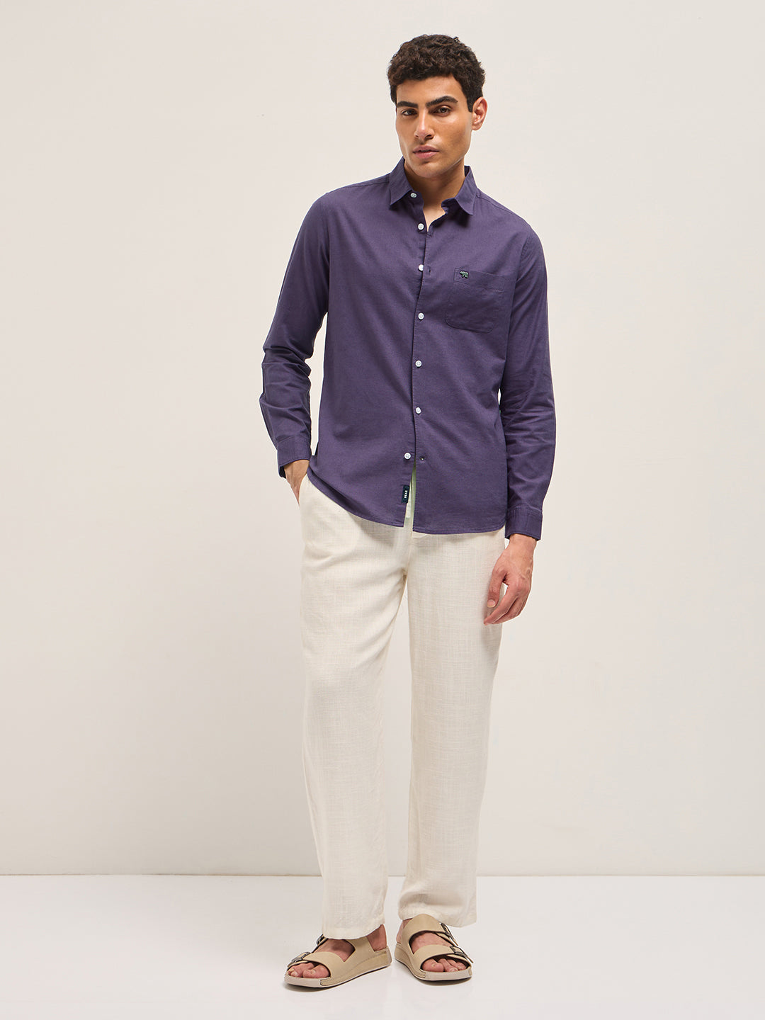 Purple Cotton Linen Slim Fit Solid Casual Shirt