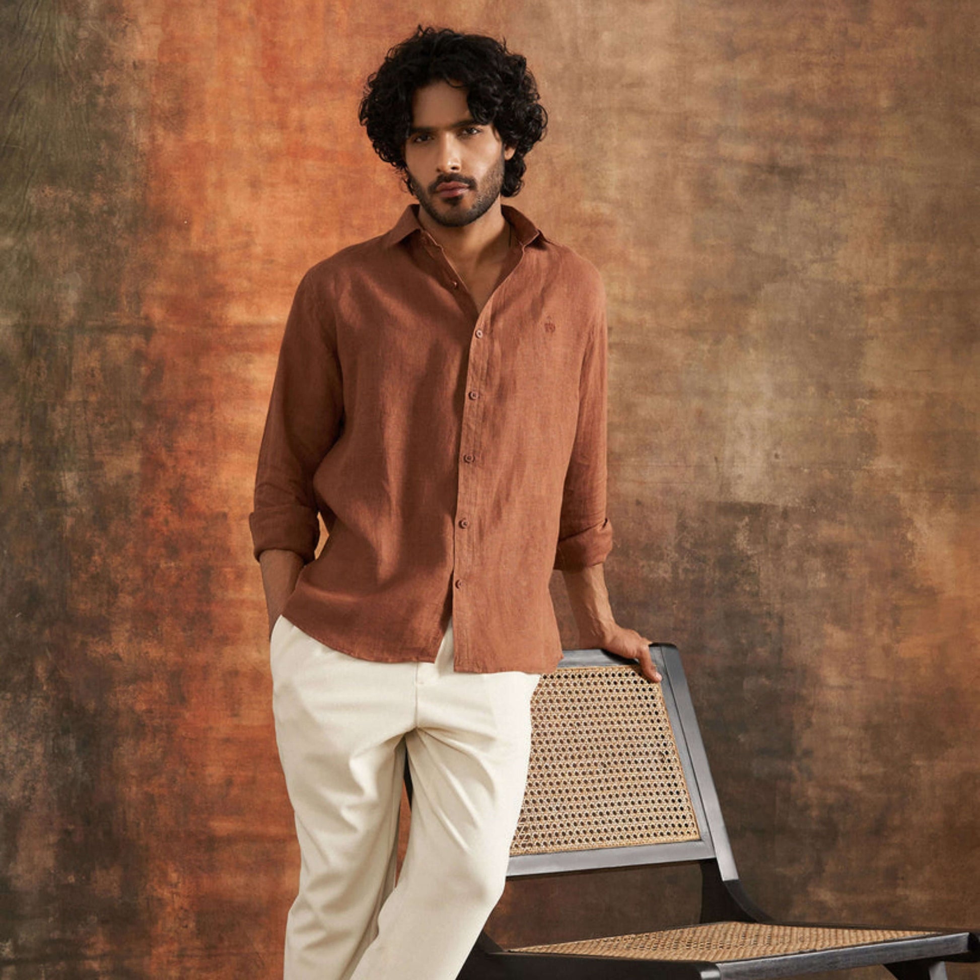Earth-Tone Cotton Linen Shirt | Natural Comfort & Effortless Style