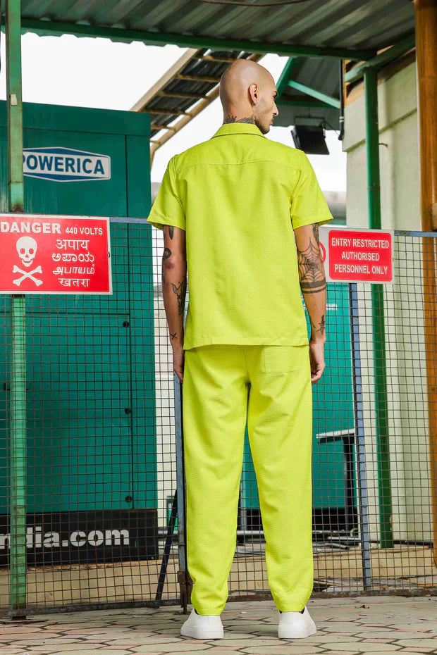 Lime Green Textured Fabric Notched Lapel Collar Relaxed Fit Co-ord Set