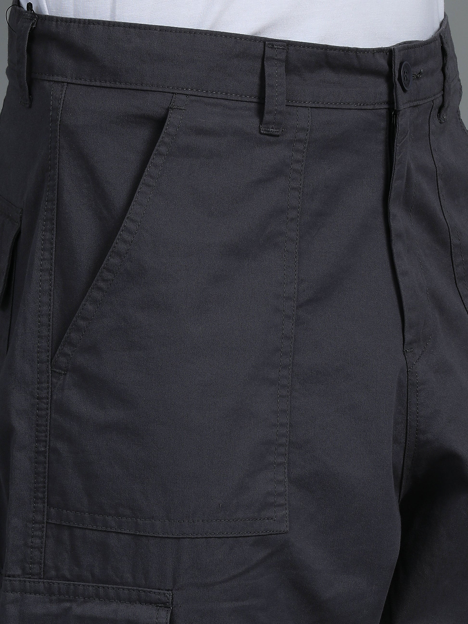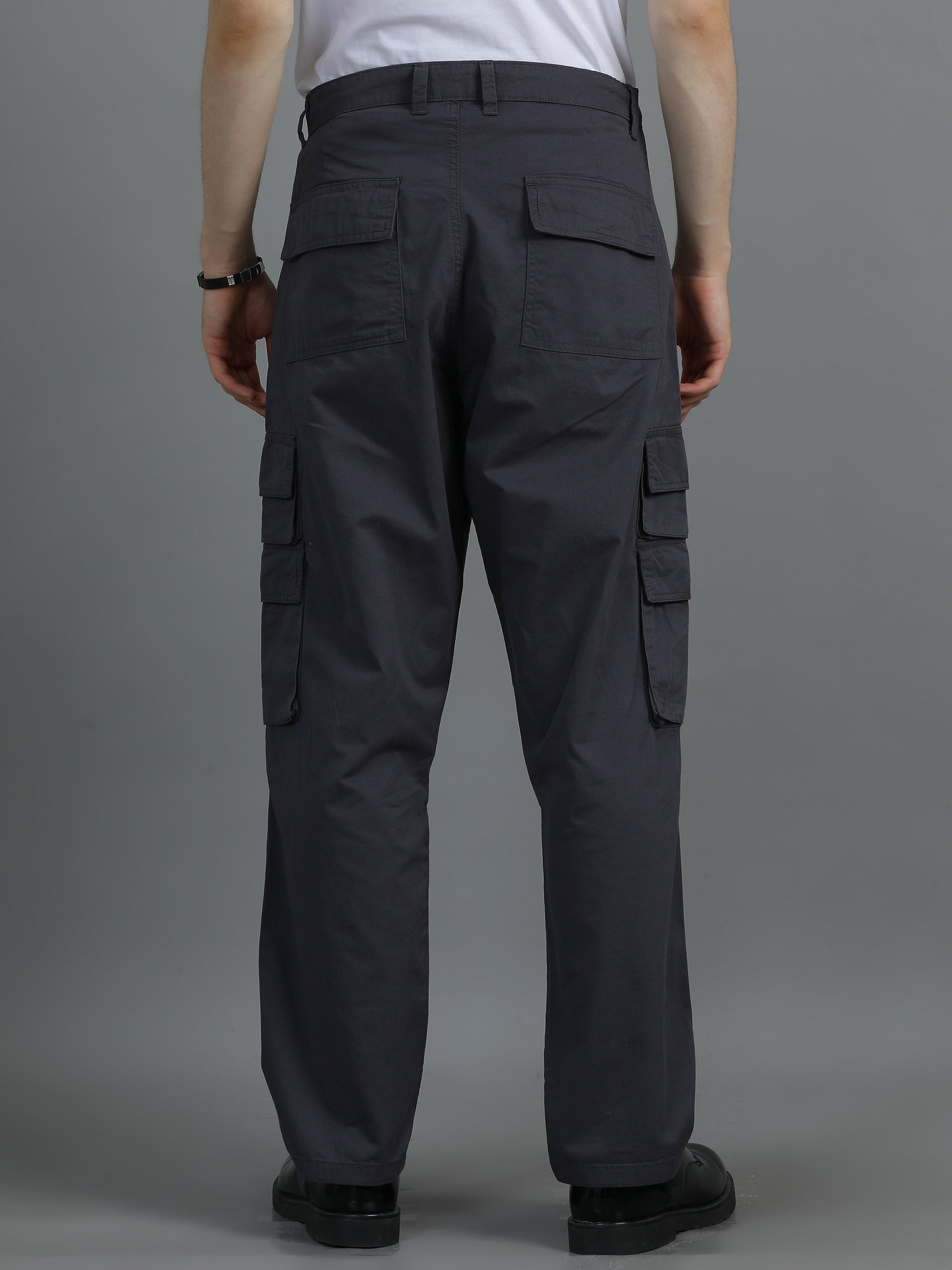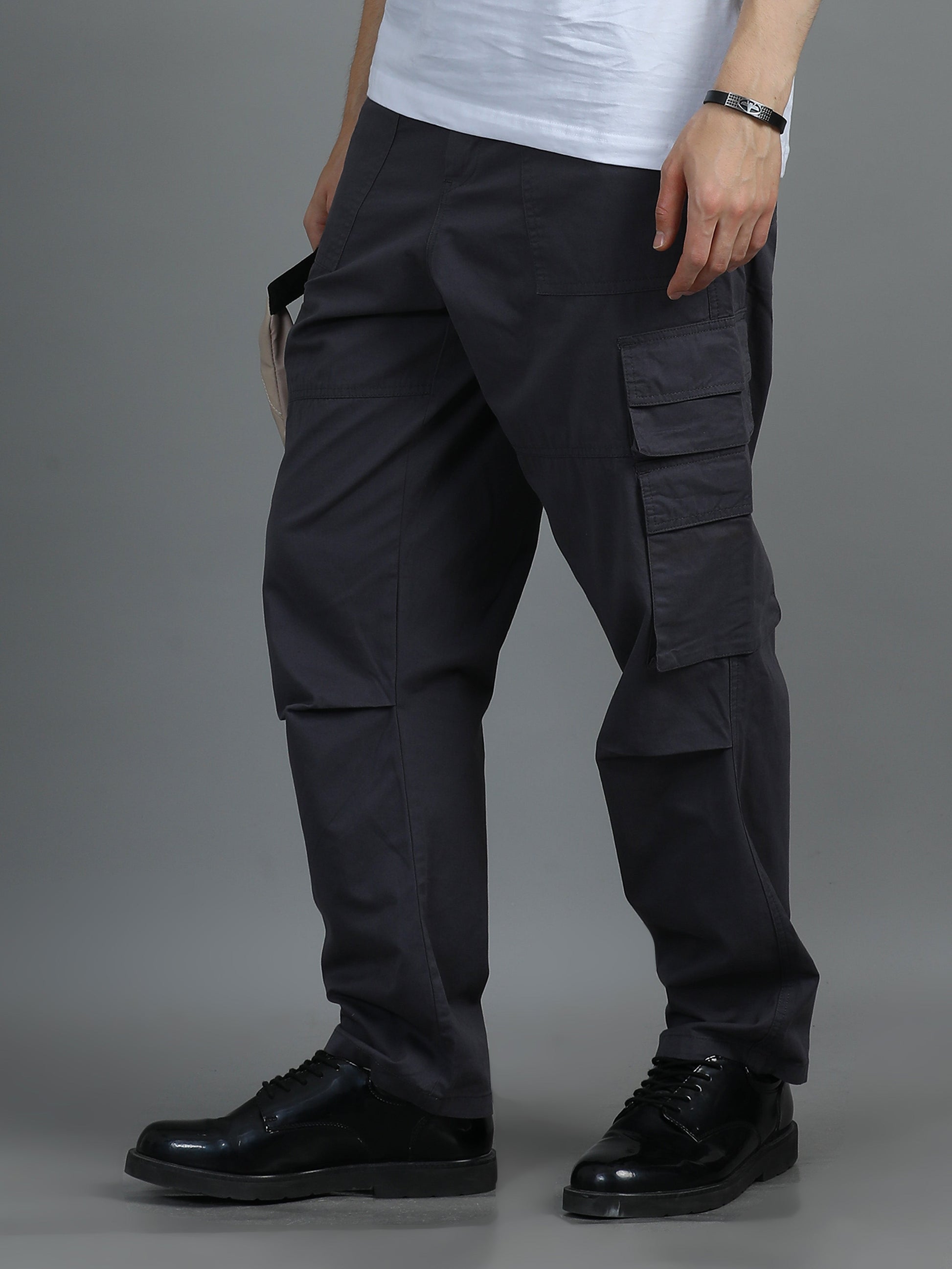 Pack of 2 Cotton Relaxed Fit Cargo Trousers, Charcoal Grey Brown