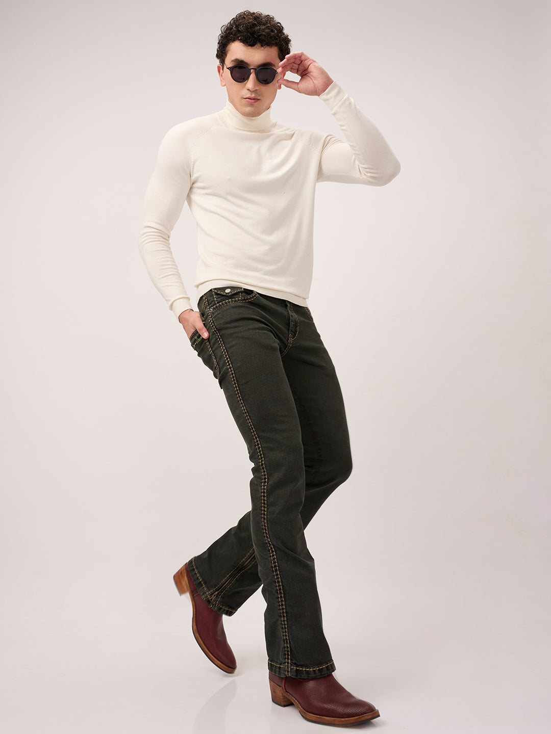 Step into bold, street-ready confidence with these Mode De Base Men’s Bootcut Jeans in a deep Carbon Moss Black. Tailored with a low-rise waist and a subtle bootcut silhouette, this pair is designed for a sharp, modern fit. The functional zippers at the bottom hem add a unique edge, while flap pockets on the front elevate the utilitarian vibe.