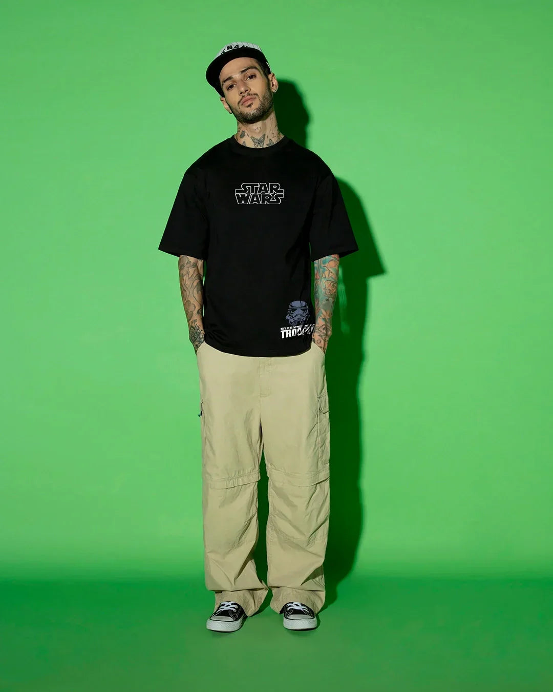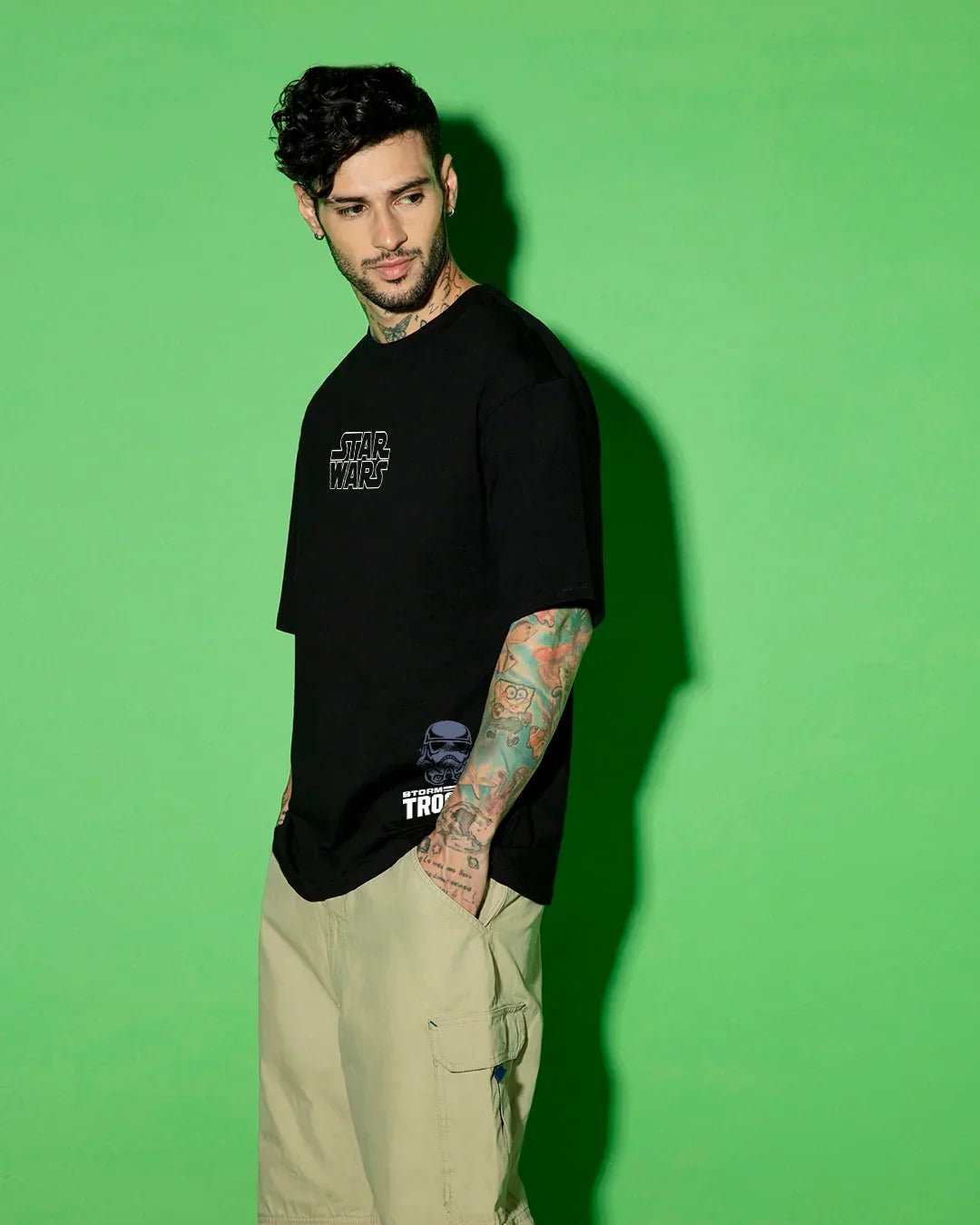 Men's Black Storm Trooper Graphic Printed Oversized T-shirt