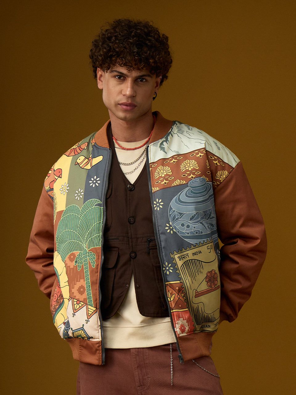 - The Musafir Bomber Jacket is more than just outerwear- it's a tribute to the explorer's spirit. Designed for those who collect memories as they move, this jacket is a wearable tapestry of India's diverse culture.
