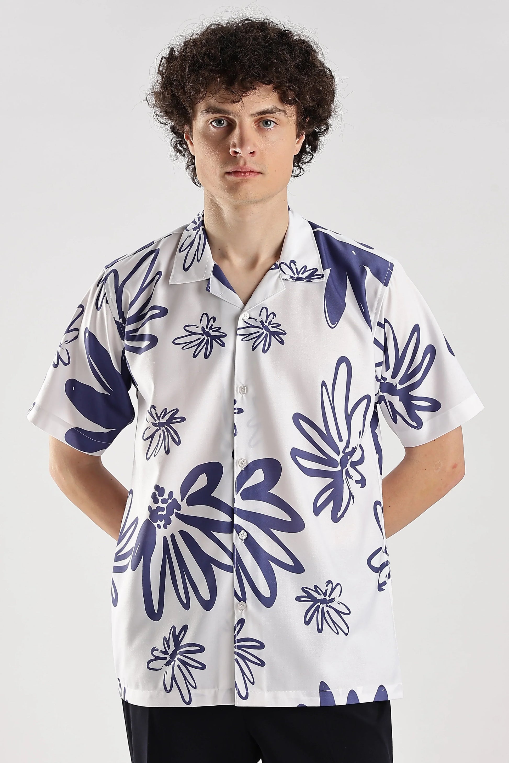 White floral printed hawaiian shirt